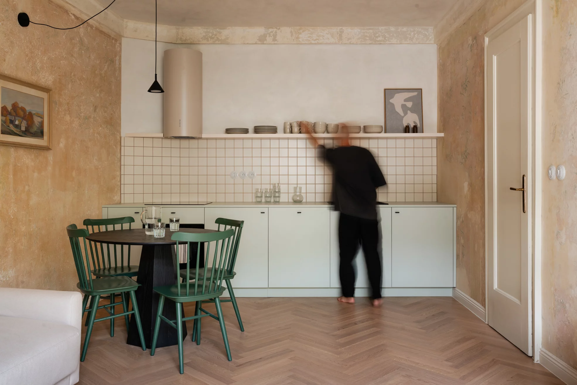 Rekonstrukci bytů s ikonickým výhledem na Grandhotel Pupp jsme pojali jako setkání historie s moderním životem. Velkorysý původní byt jsme rozdělili na tři samostatné jednotky – dvě prostorné 2kk a jednu útulnou 1kk – které dnes slouží jak pro krátkodobé návštěvy, tak i pro delší pobyty. Navrátili jsme se tak k původní dispozici, objekt sloužil jako depandance pro zmiňovaný Grandhotel Pupp. Každý detail jsme navrhli tak, aby uživatelům poskytl plnohodnotné zázemí, a přitom zůstal věrný původnímu duchu místa. Skleněné příčky se subtilním rámováním přinášejí do ložnic i chodeb více světla a při vstupu do apartmánů otevírají výhled na Grandhotel Pupp. Autenticitu interiéru podtrhují repasovaná svítidla, ponechaný dobový nábytek a oškrábané omítky, které odkryly dekorační válečkované nátěry. Parketové dřevěné podlahy odkazují na tradiční historické skladby. Repasované dveře s mosazným kováním a nově vybudované koupelny v moderním standardu propojují minulost s přítomností. Výsledkem je prostor, který má duši – a který si vás získá hned při prvním otevření dveří.