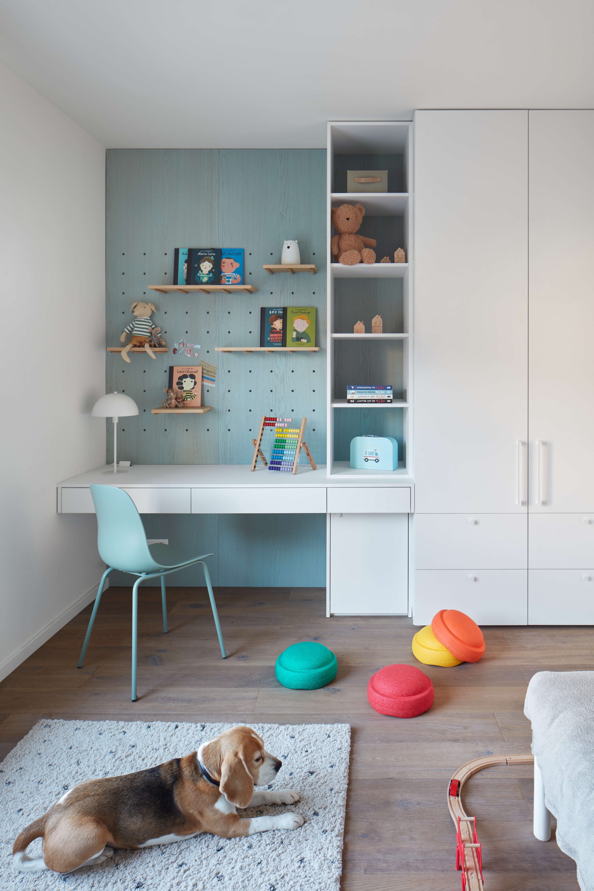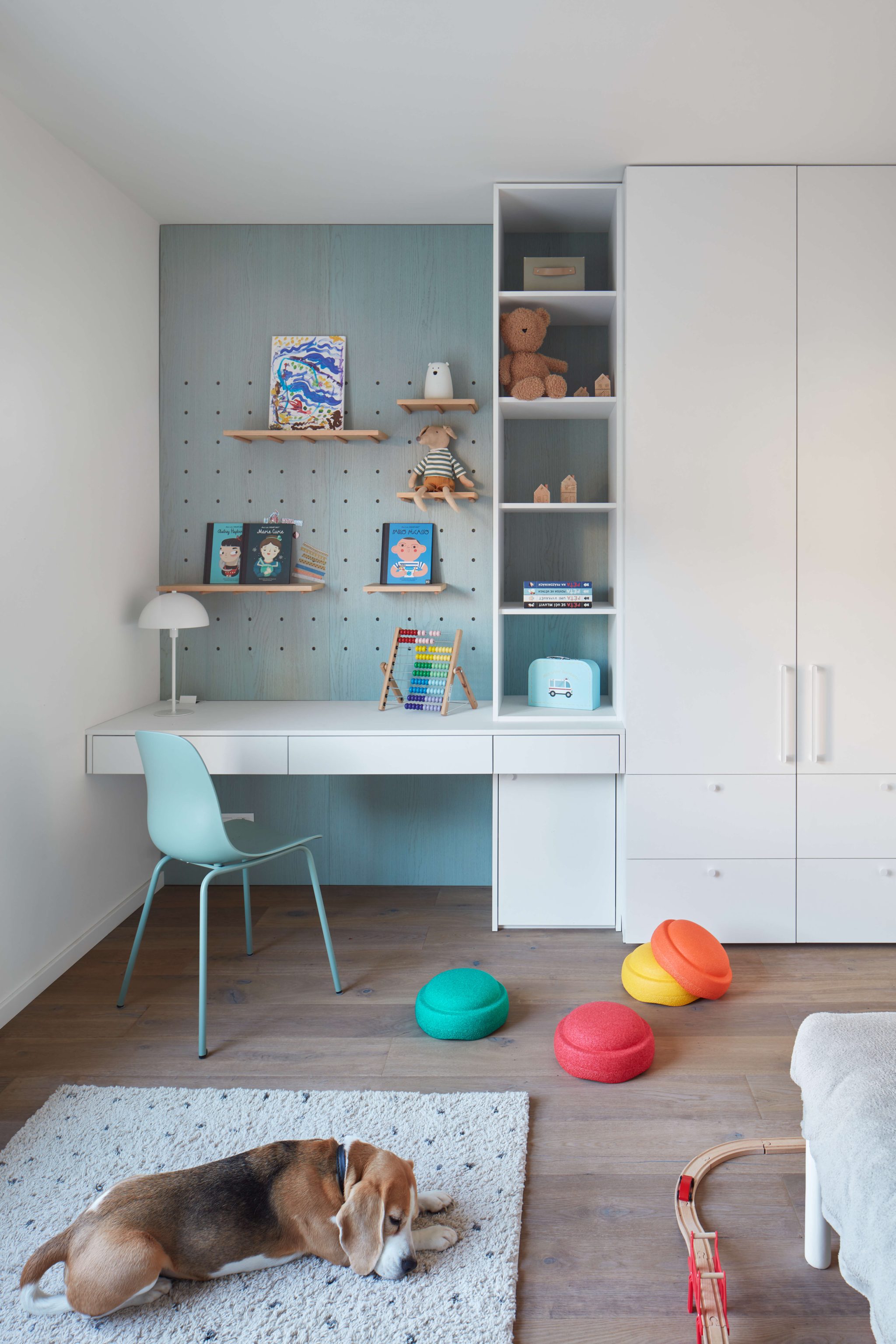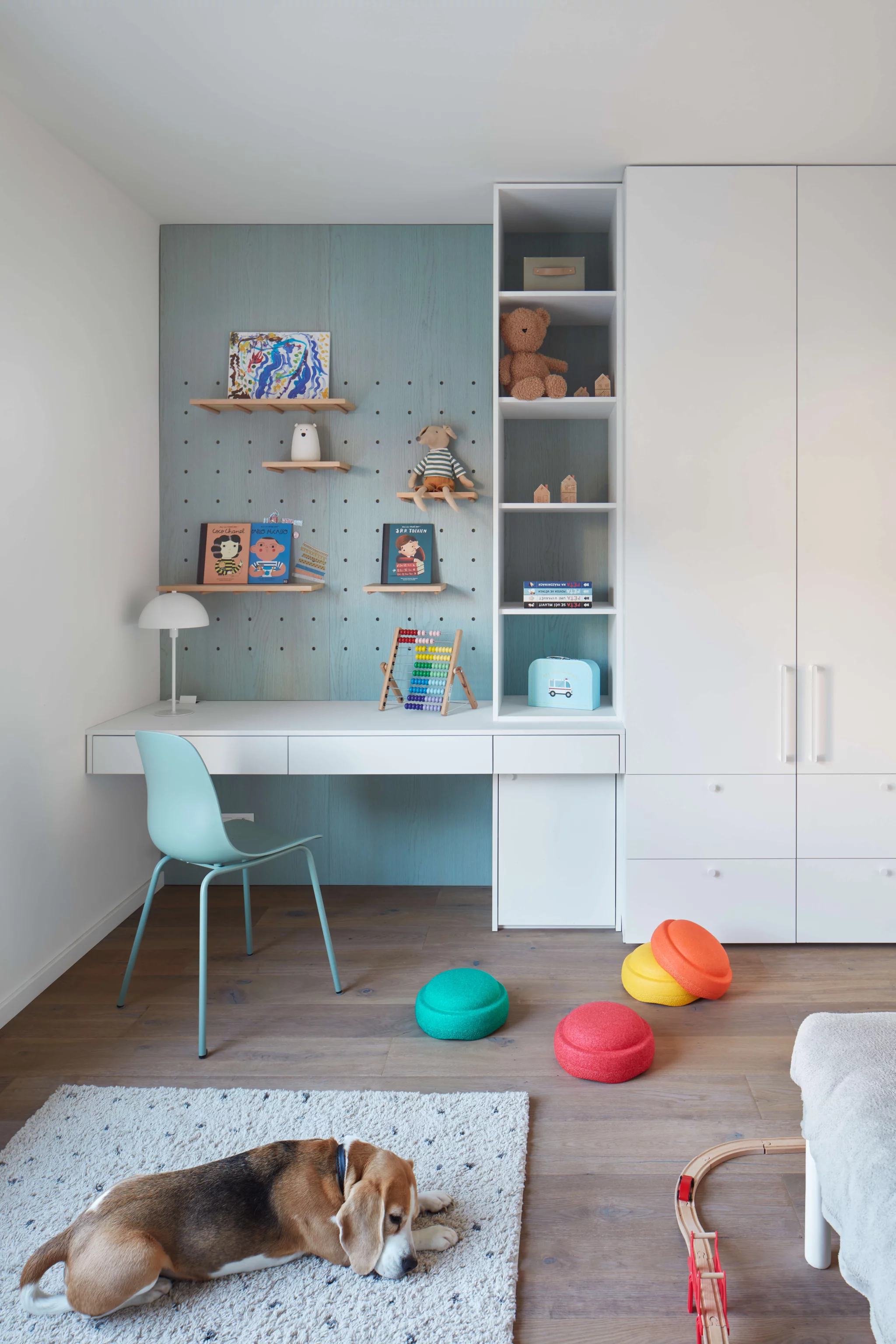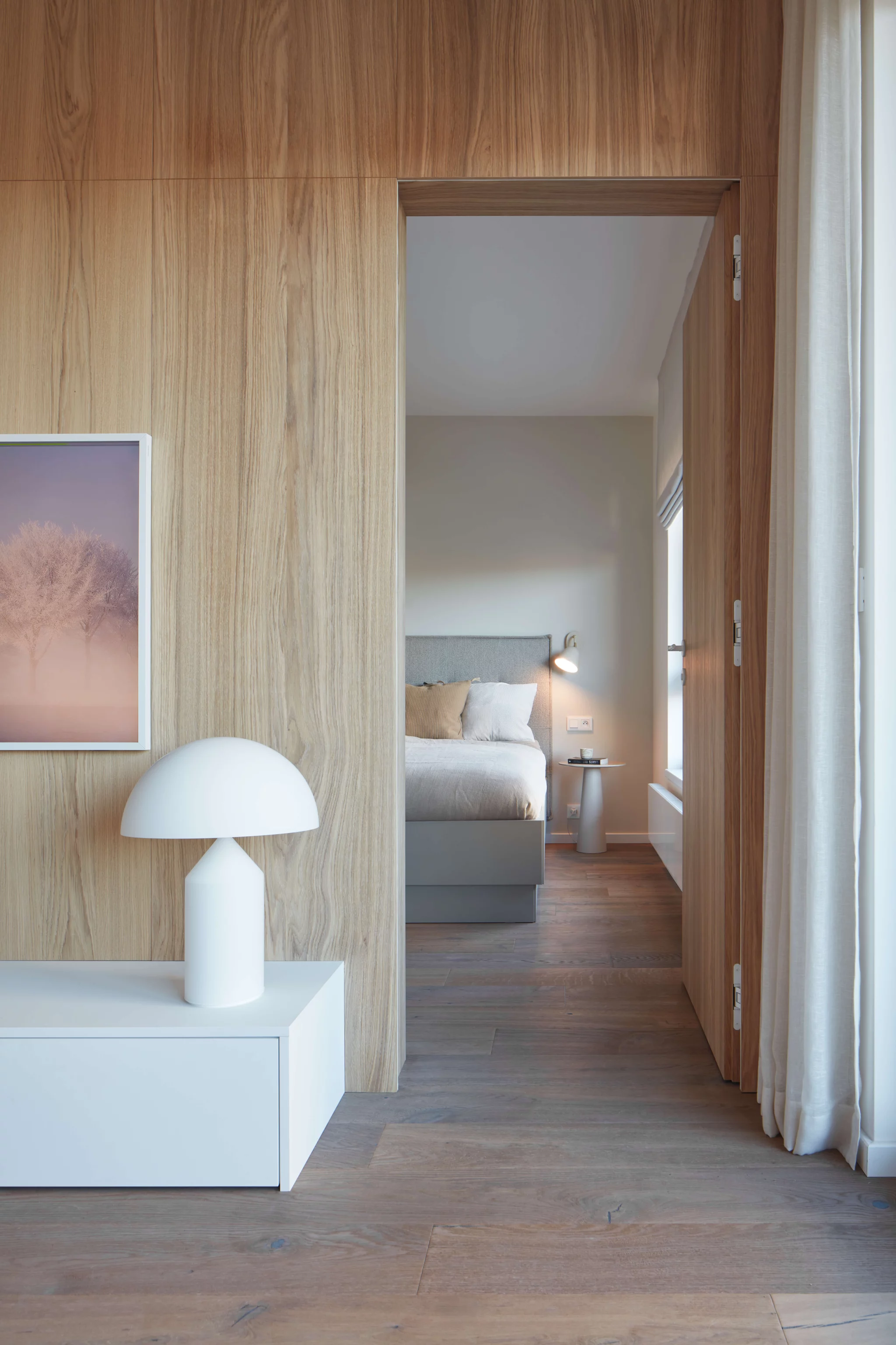 Proces návrhu pražského interiéru blízko Vltavy o dispozici 4+kk se nesl v duchu hledání harmonie jemných a světlých barevných tónů, které prostupují celým prostorem. Jemnost je v návrhu podpořena oblými prvky a čistotou jednotlivých linií, kdy se významnou dominantou bytu stává světlo Flare od značky Bomma nad jídelním stolem a na jeho tvar navazující kuchyňský ostrůvek.