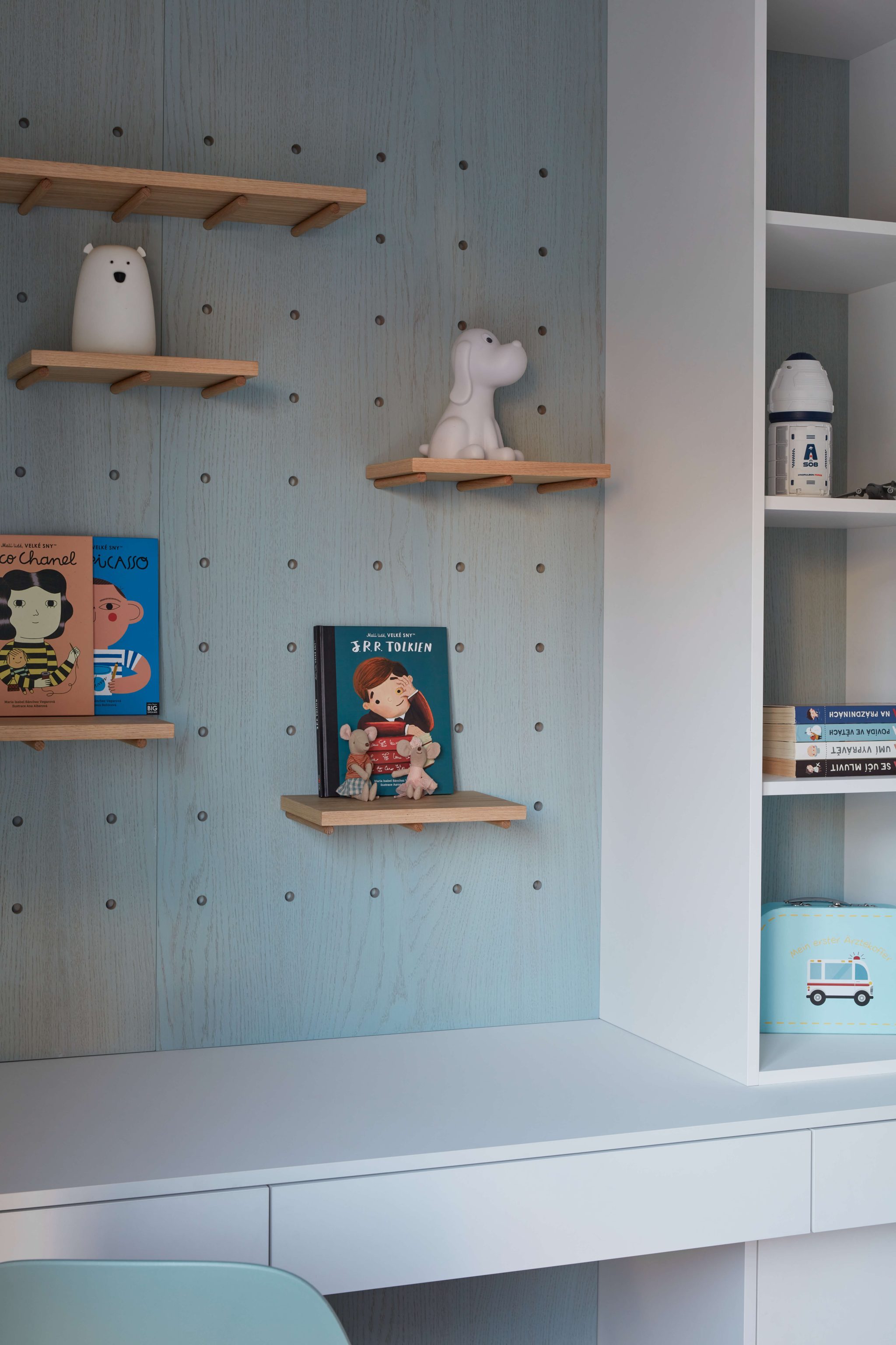 Veliký důraz byl kladen na funkčnost, promyšlené úložné prostory, vysokou kvalitu materiálů a precizní provedení detailů nábytku na míru.